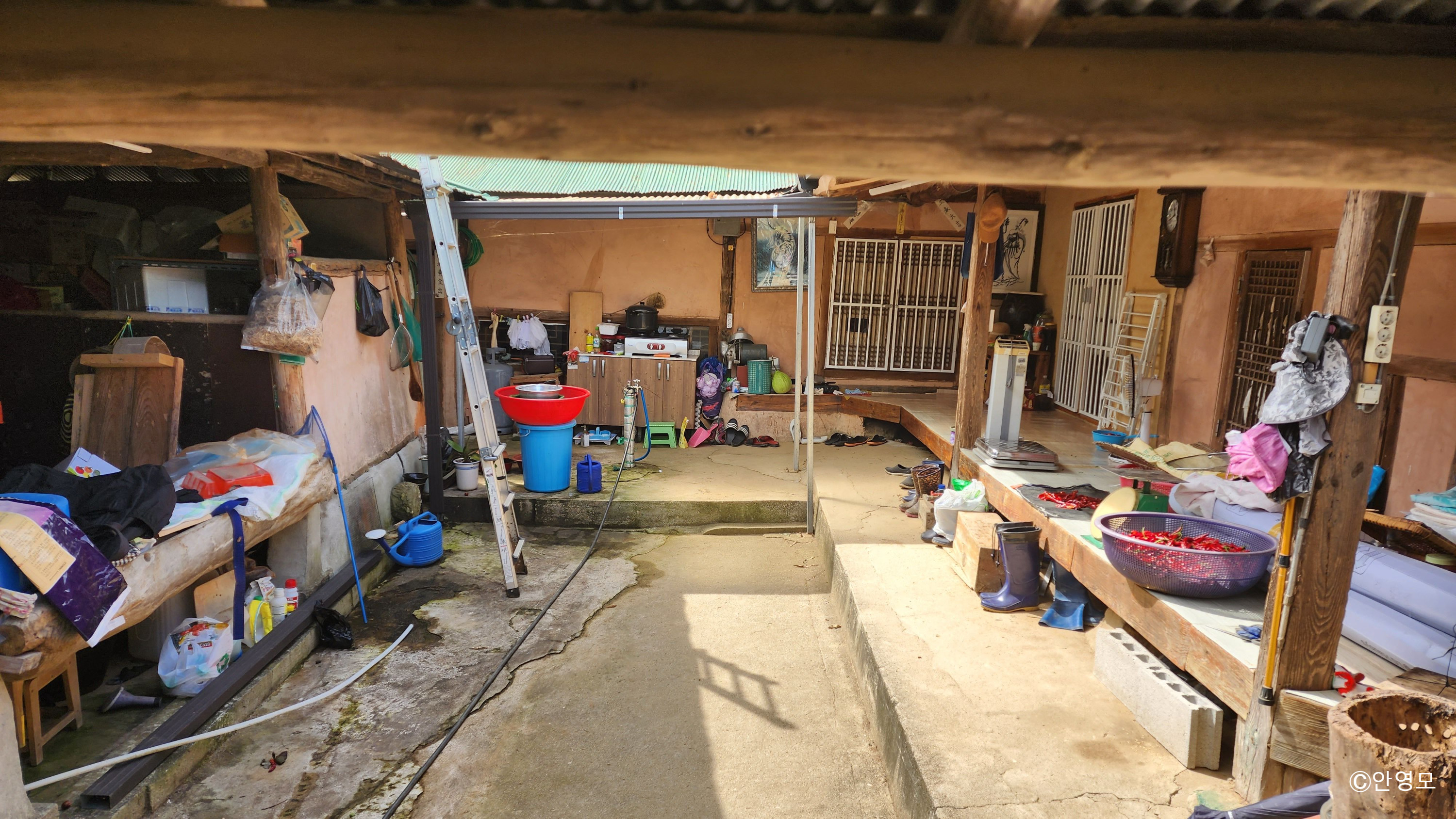 야시대-품걸리 2차선 도로에 접한 구옥과 텃밭