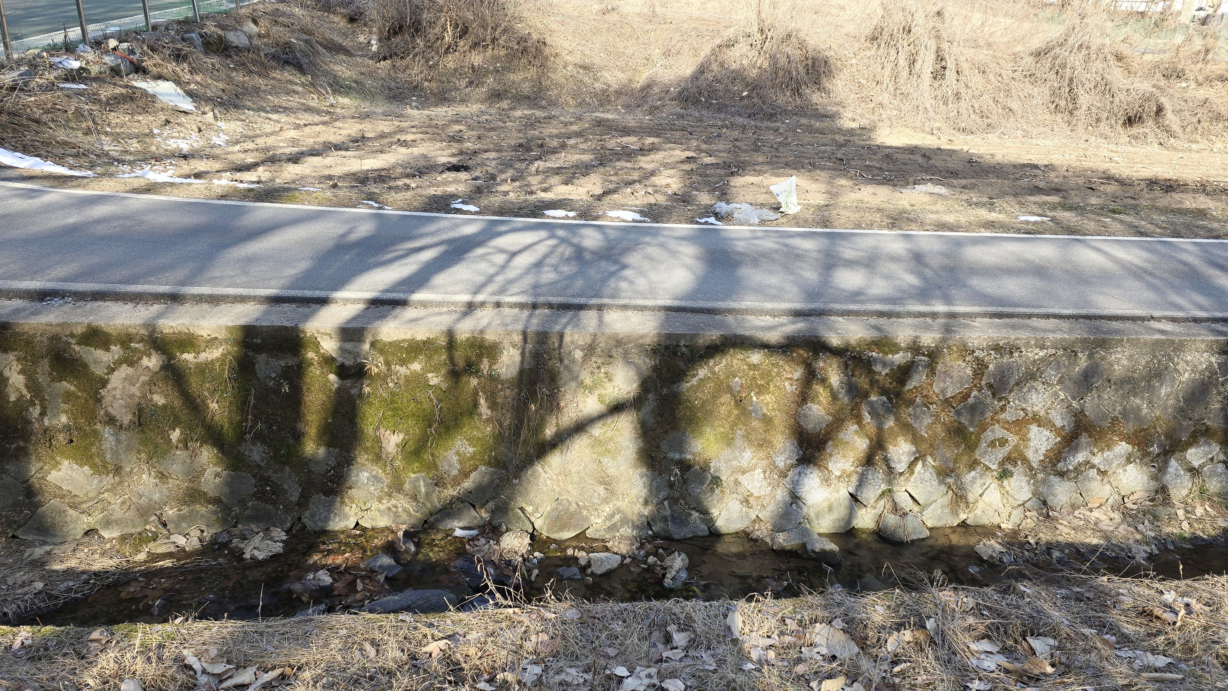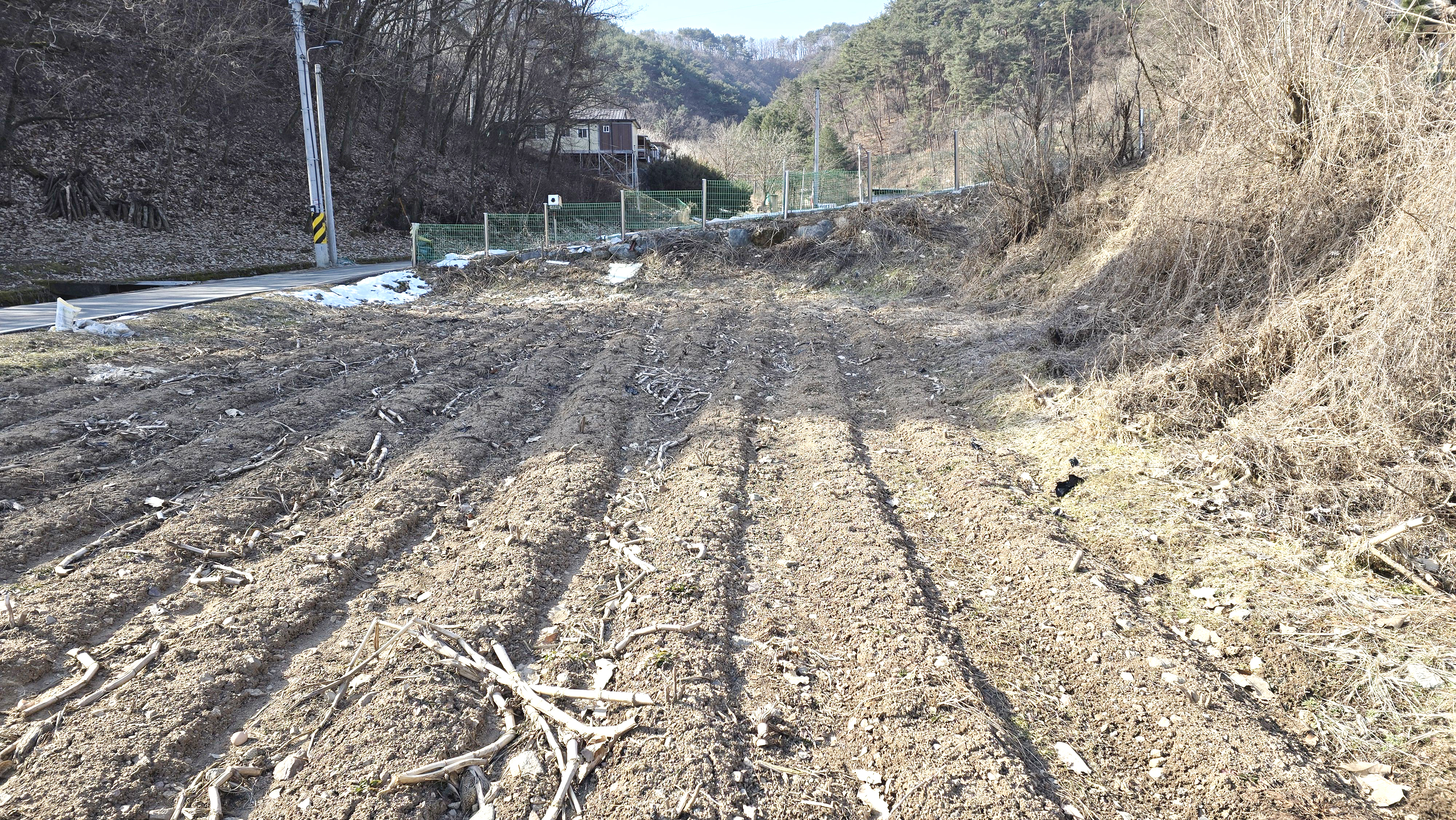 사다리형 완경사지, 남동측 4m 내외 아스콘 포장도로